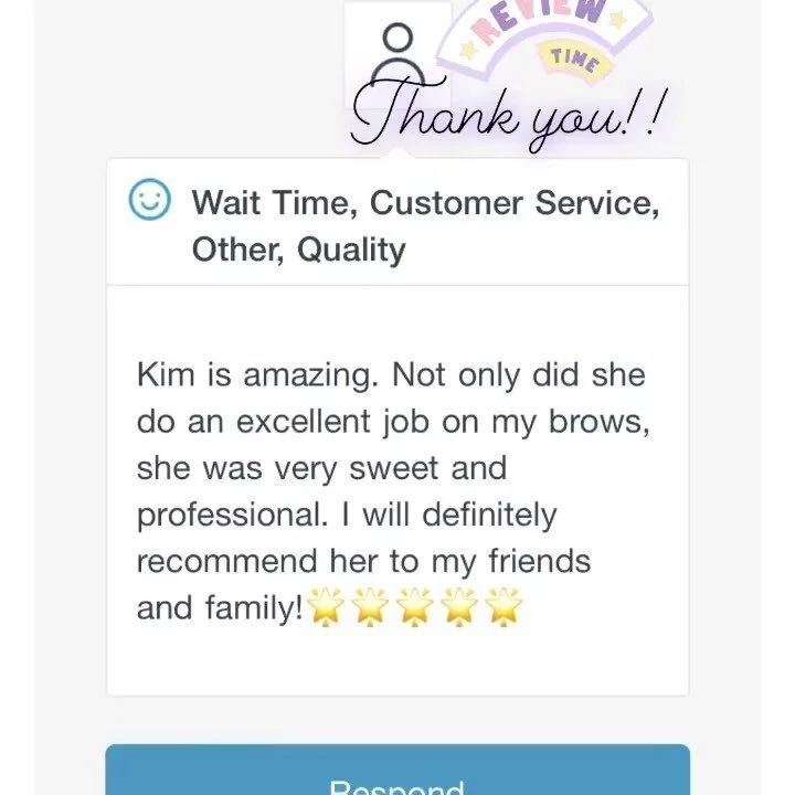 “Kim did a great job on my eyebrows! So glad I found someone who knows what they are doing. Will highly recommend to others!”